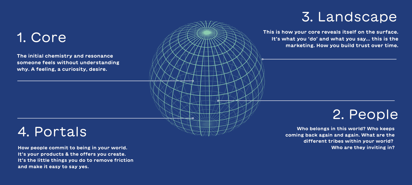 Mike's personal qualities enabled him to build something people naturally gravitate toward, now let's look at his world. For every world that people naturally gravitate toward, there are four components that make people want to belong: